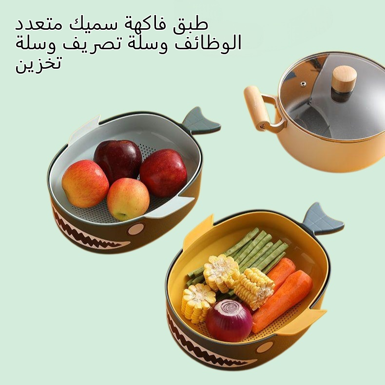 طبق فاكهة سميك متعدد الوظائف يستخدم كسلة تصريف وتخزين، مصنوع من مواد متينة، تصميم عملي لتوفير المساحة، سهل التنظيف، مناسب للمطبخ والاستخدام اليومي.