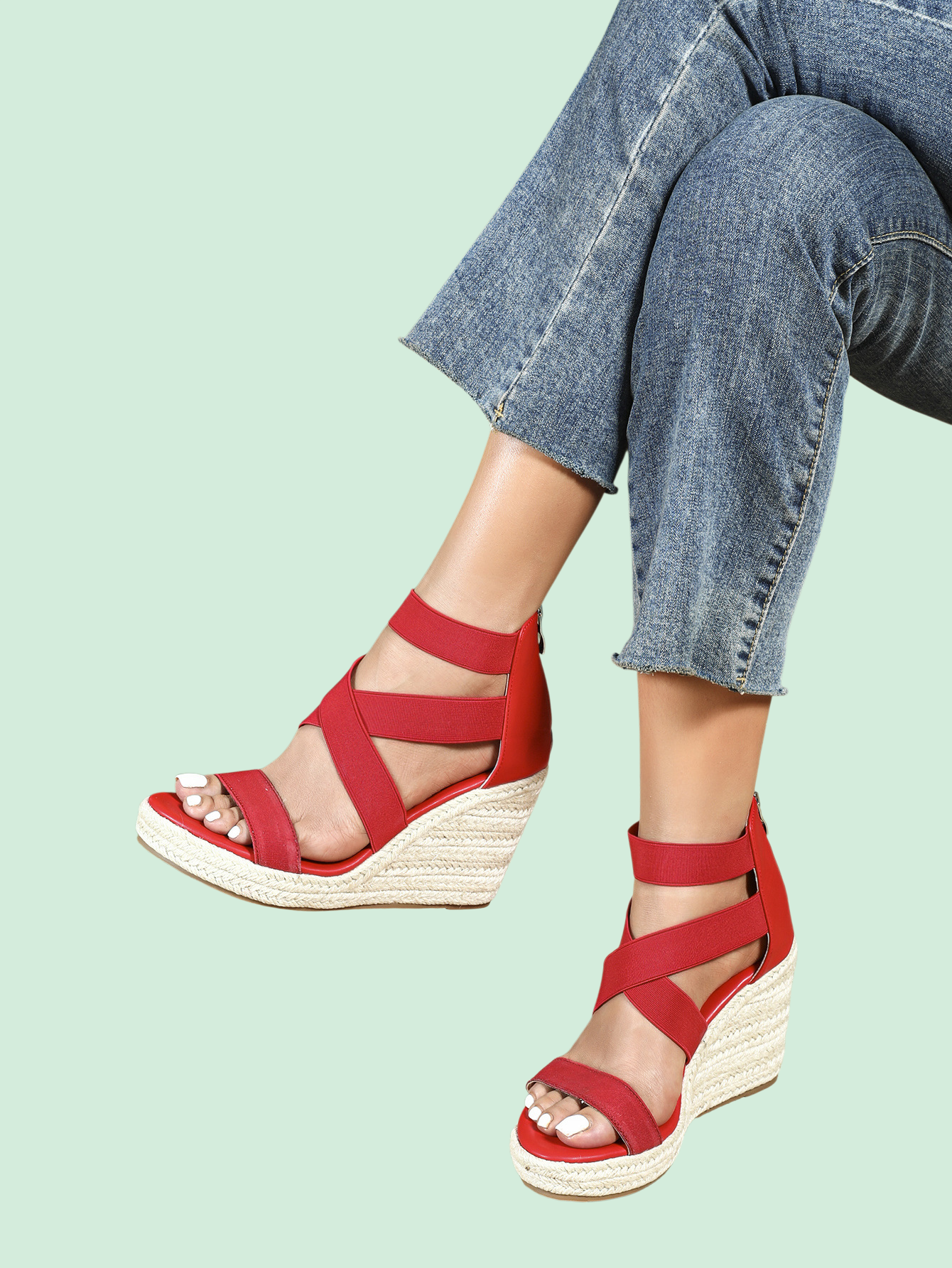 صنادل صيفية بكعب إسفيني بتصميم أوروبي أمريكي، إبزيم قابل للتعديل، خامات عالية الجودة، راحة أثناء المشي، مناسبة للإطلالات اليومية والمناسبات.