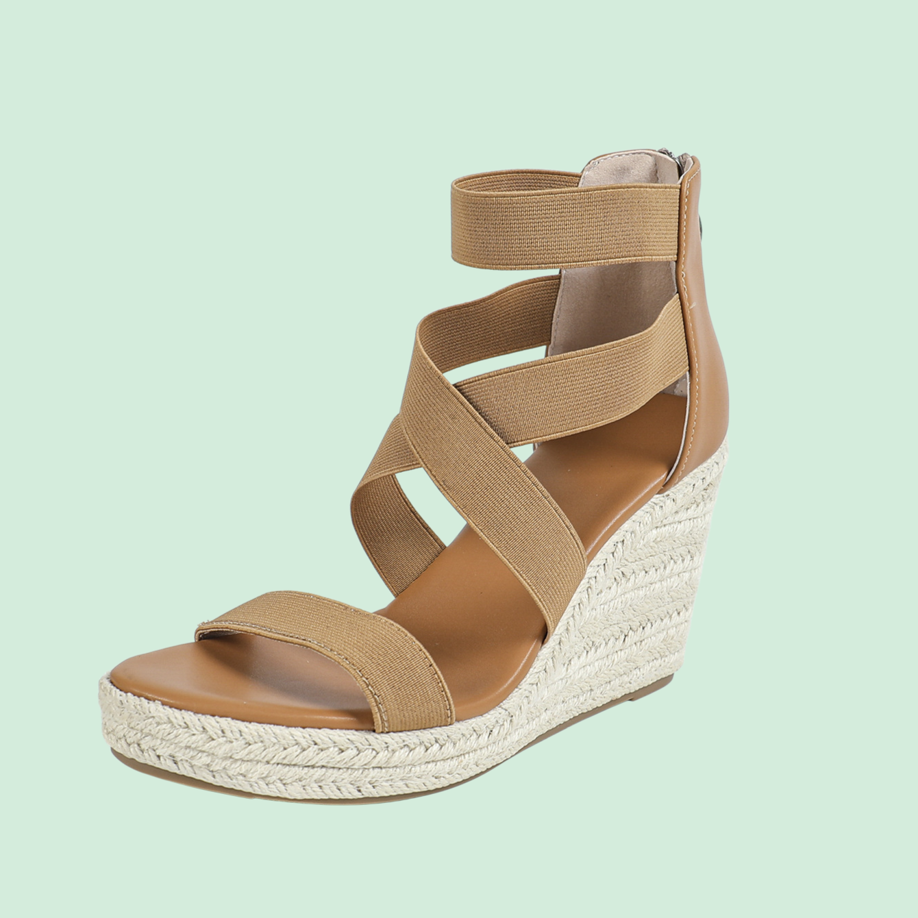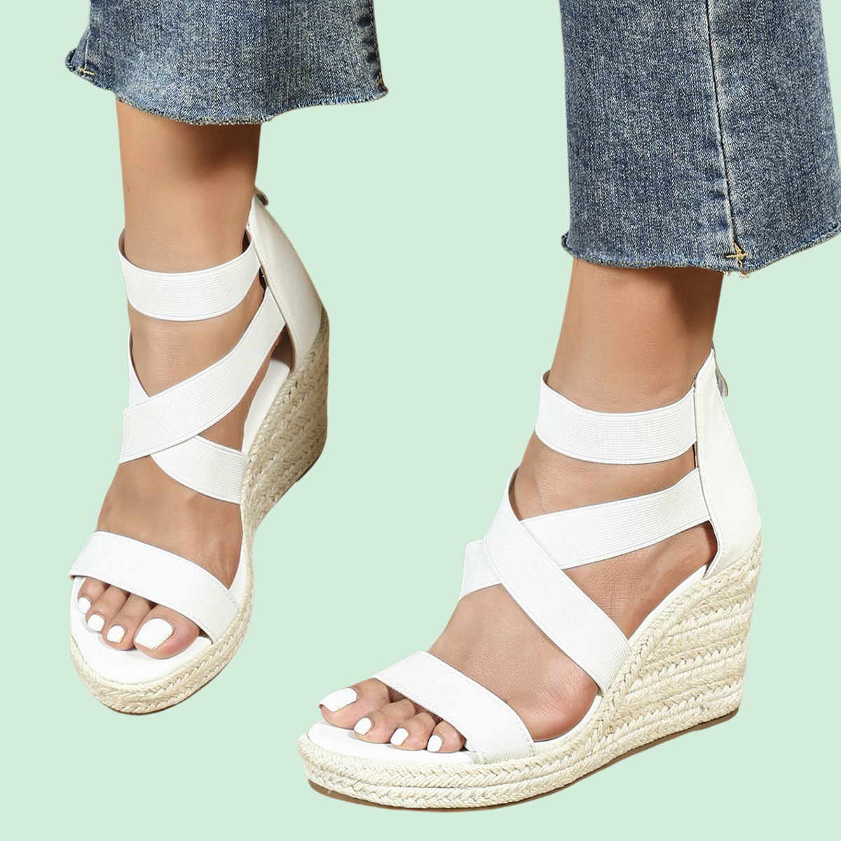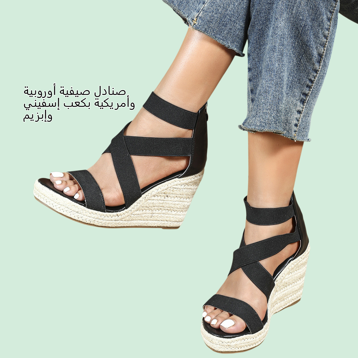 صنادل صيفية بكعب إسفيني بتصميم أوروبي أمريكي، إبزيم قابل للتعديل، خامات عالية الجودة، راحة أثناء المشي، مناسبة للإطلالات اليومية والمناسبات.